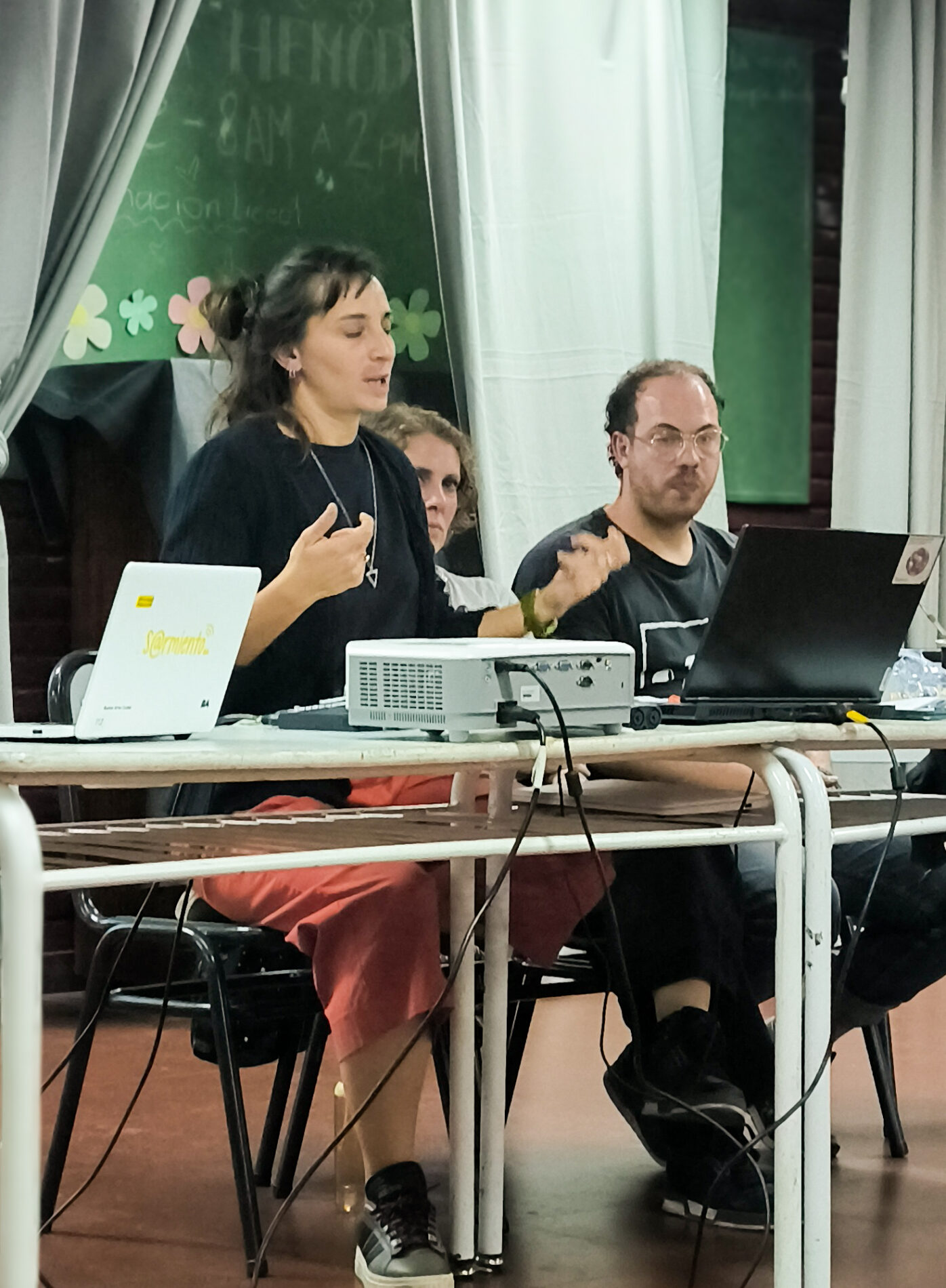 El equipo de investigación estuvo conformado por Soledad Aulet (estudiante avanzada de TLyR), Ayru Orellana (graduada en TLyR), Adriana Quintero Guillen (graduada en PyES), y Lucas Dellatorre y Manuel Feder (estudiantes avanzados de PyES). Hoy todes elles están graduades.